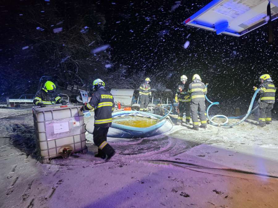 K nehodě došlo v časných ranních hodinách. Převrácená pětikomorová cisterna začala masivně unikat do půdy a také do blízkého potoka. Řidiče hasiči z vozidla vyprostili a následně ho předali do péče zdravotnické záchranné služby.