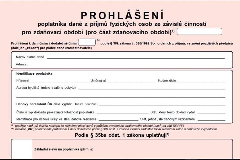 Tímto formulářem totiž prohlašujete, že uplatňujete zákonné slevy na dani, např. na poplatníka, na dítě či na invaliditu. Sleva na studenta byla v rámci úsporného balíčku již dříve zrušena a v roce 2026 ji již uplatnit nelze.