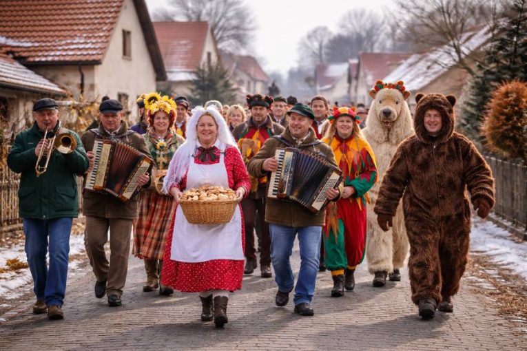 Masopust v Březhradu není koncipován jako inscenovaná událost, ale jako živé sousedské setkání, kde má své místo spontánnost, humor i drobné improvizace, které k této tradici patří.