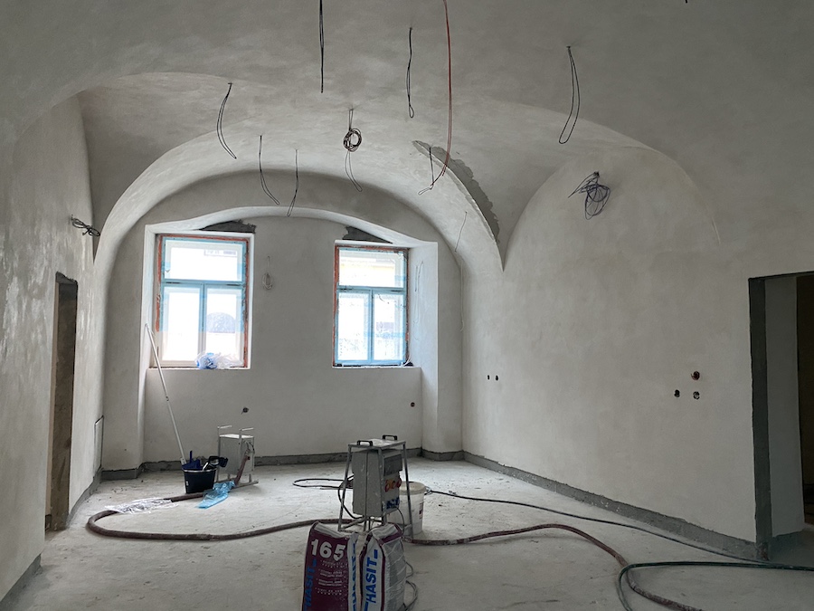 Nyní podle něj nastává klíčová chvíle pro investora. „Připravujeme pro něj vzorovou místnost s cementovou dlažbou a zároveň společně vybíráme dveře, vrata a další interiérové prvky. Co se týče exteriérů, nezbývá nám, než se těšit na jaro, kdy budeme moct pokračovat s úpravou dvorů, gastrodomku a venkovními omítkami,“ prozradil Kunca.