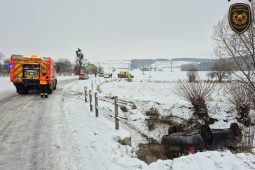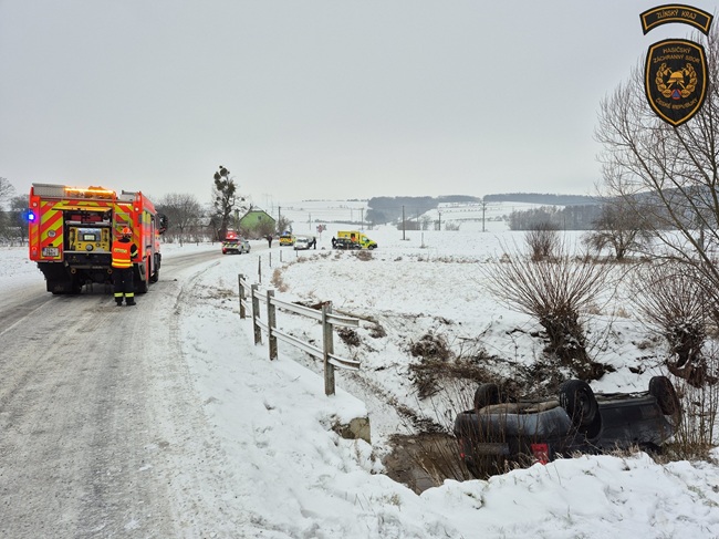 K havárii vyjeli hasiči z Otrokovic, kteří po příjezdu našli ženu s dětmi v péči záchranářů. „Zasahující hasiči provedli průzkum místa nehody a zajistili havarovaný automobil proti vzniku požáru. Současně do vodního toku položili sorpční hady, aby zachytili případný únik provozních kapalin a zabránili ohrožení životního prostředí,“ popsala zásah mluvčí hasičů Lucie Javoříková.
