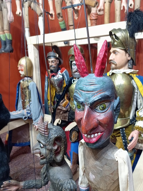 Součástí výstavy jsou i cenné kolekce loutek ze spolkových divadel, zapůjčené sběrateli Marií a Pavlem Jiráskovými. Reprezentativní soubor současných autorských loutek výtvarníka a loutkáře Tomáše Volkmera poskytlo Divadlo loutek Ostrava.