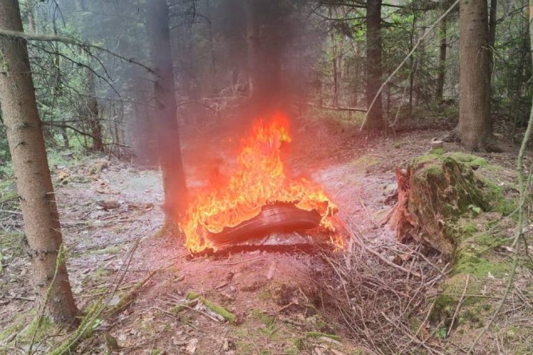 Z jedoucího náklaďáku se odlomilo kolo. V lese samo chytlo