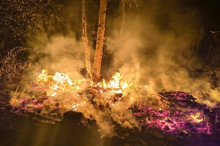 Požár v ulici Ke Slonům. Hořel provizorní přístřešek, zasahovali hasiči i strážníci
