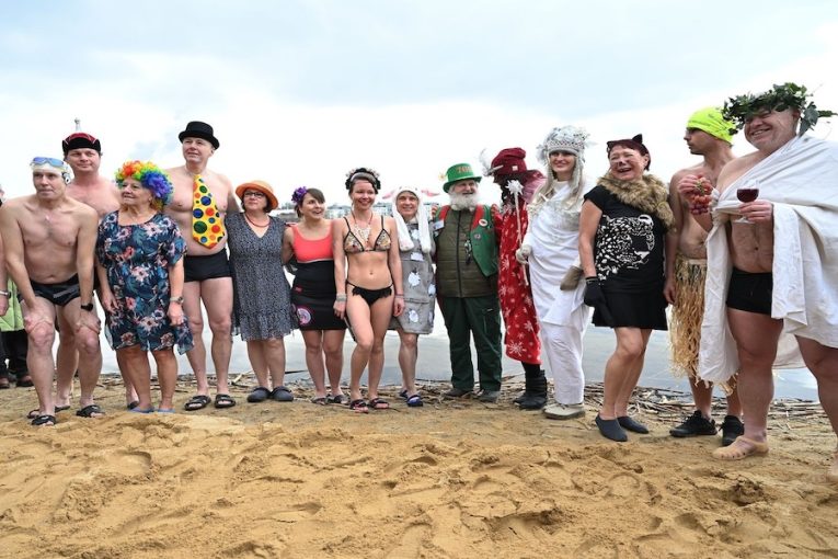 Otužilci v maskách ovládli Bolevák. Přispěli tak na léčbu Karolínky