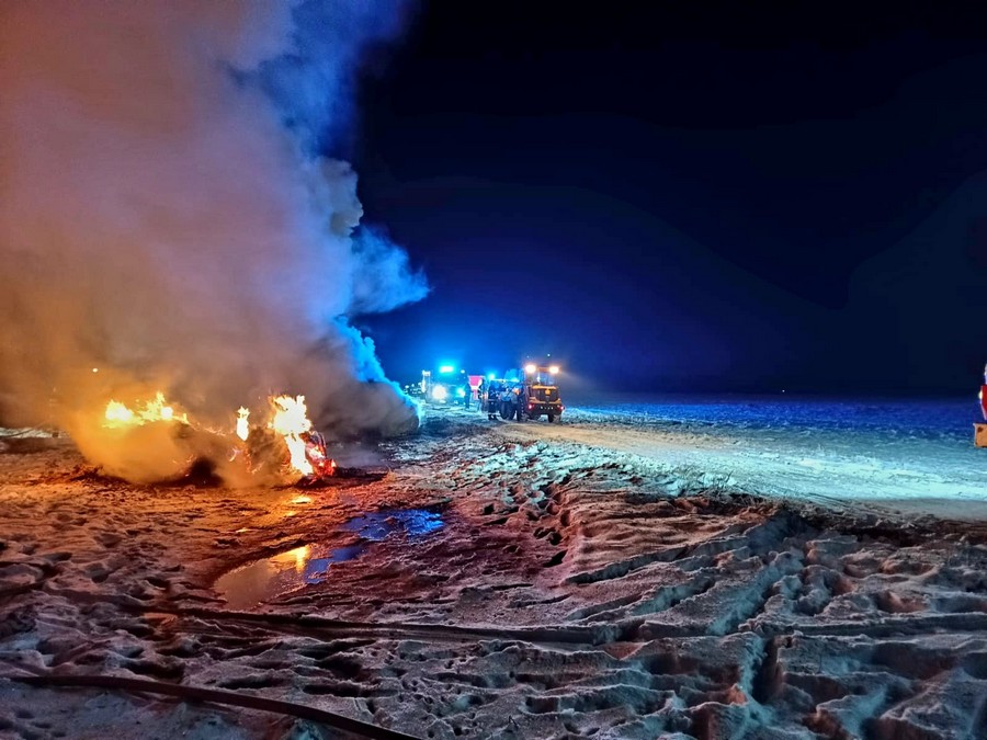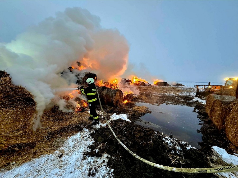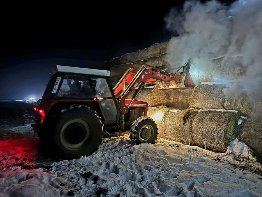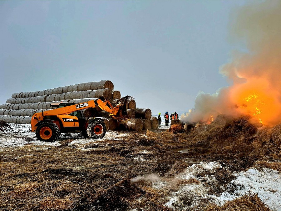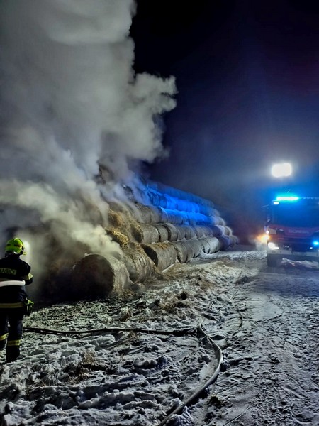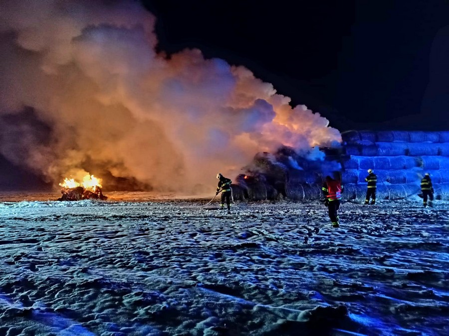 Hořet začalo ve čtvrtek 11. ledna 2024 kolem půl šesté hodiny ranní. „Na místě máme šest cisteren profi hasičů z Českého Krumlova a jednotka dobrovolných hasičů z Velešína a Dolního Třebonína. Stoh s balíky slámy se podařilo dvěma nakladači přepůlit. Zasažená část bude ponechána ke kontrolovanému vyhoření. Požár je lokalizován, to jest pod kontrolou zasahujících hasičů,“ popsala situaci na místě mluvčí jihočeských hasičů Vendula Matějů.