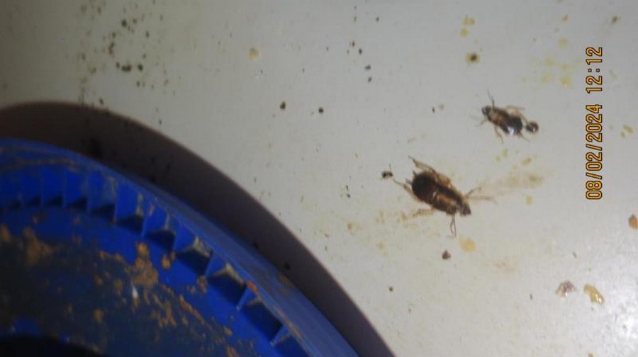 Na různých místech v provozovně se nacházeli živí i uhynulí švábi. Inspektoři je našli například ve skladu na podlaze pod regály s potravinami, ve spojovací chodbě vedoucí do kuchyně nebo v kuchyni v blízkosti lednice či umyvadla.