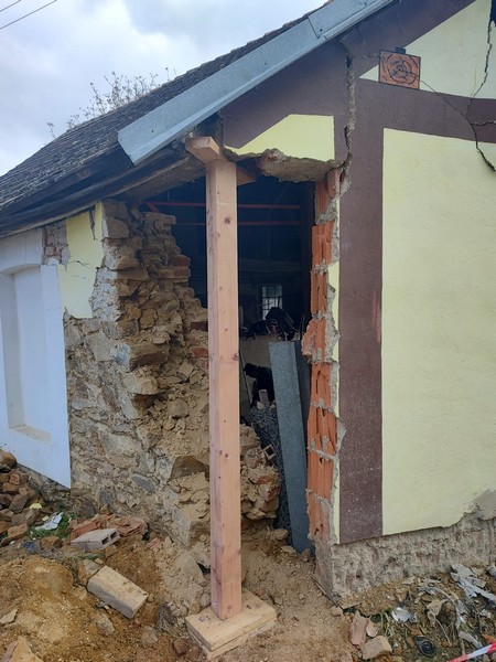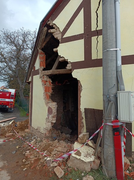 Statik rozhodnul o stržení části štítové zdi a upřesnil, kde dům prostředky HZS podepřít a stabilizovat. Krátce po půl šesté velitel podal zprávu, že určená část zdi je stržena a stavba je dle pokynů statika zajištěna. Policie na silnici vedoucí v bezprostřední blízkosti omezila rychlost. Velitel zásahu písemně předal staticky zabezpečený dům majiteli,“ doplnila mluvčí hasičů.