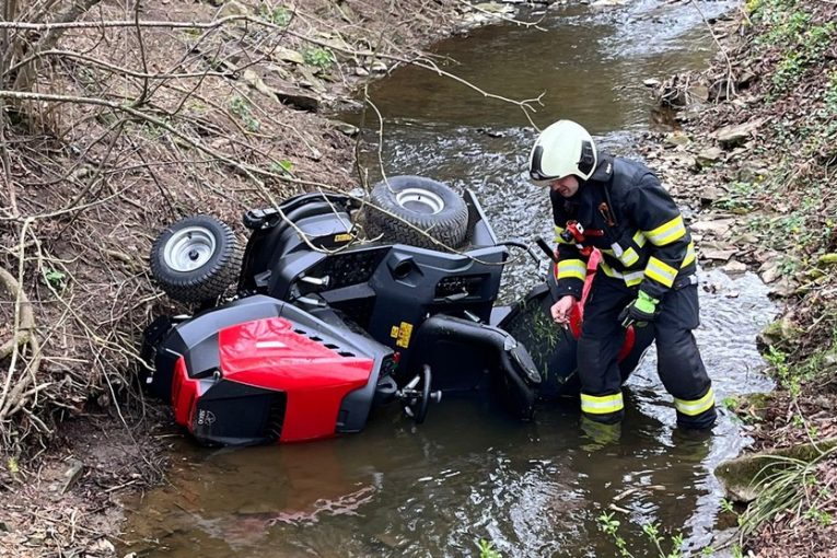 Muž sjel s traktůrkem do potoka. Utrpěl zranění