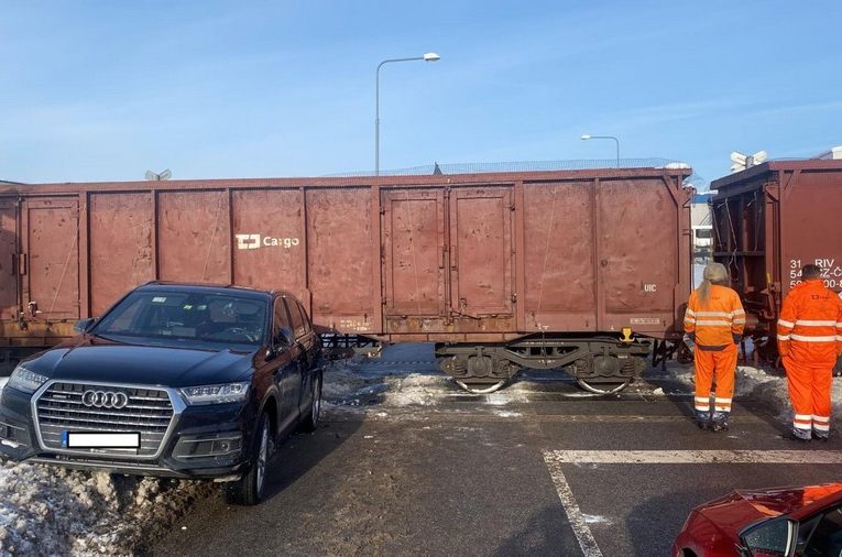 Řidička Audi přehlédla blížící se nákladní vlak. Došlo ke střetu