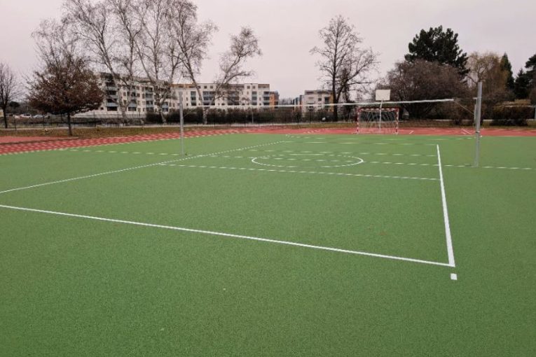 Hřiště u ZŠ Grünwaldova je po rekonstrukci. Moderní areál se veřejnosti otevře na jaře