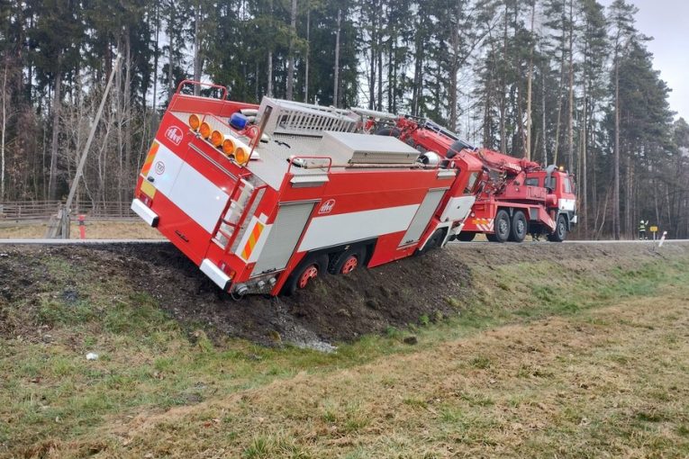 U Třebonína na Českokrumlovsku bourali hasiči. Vytlačil je kamion