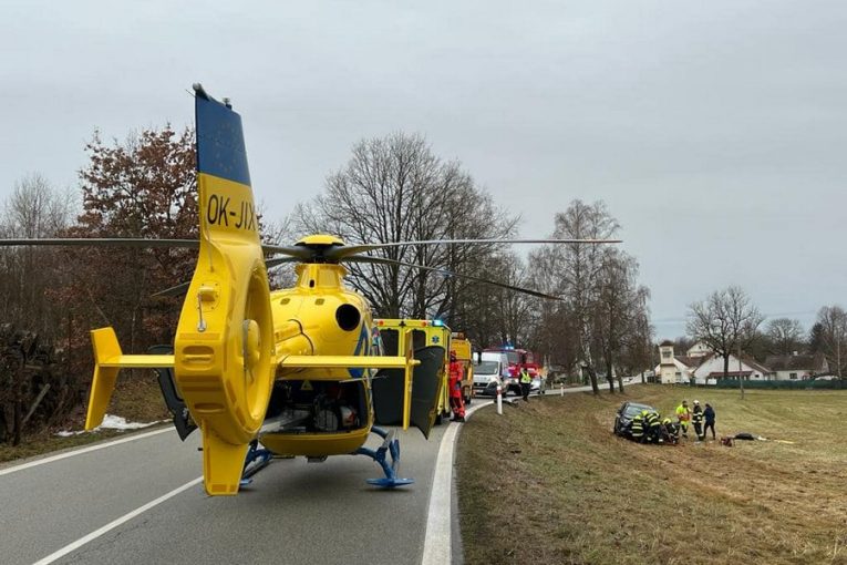 Vážná nehoda na Jindřichohradecku: Pro řidičku osobního auta letěl vrtulník