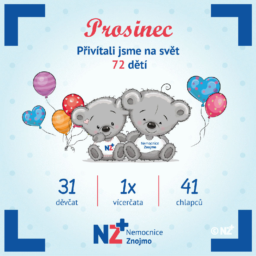 V neděli 1. ledna 2023 ve 14:10 přišla na svět holčička Amélie – první dítě znojemské nemocnice a okresu Znojmo. Amélie měří 49 cm a váží 3150 gramů. V prosinci se narodilo ve Znojemské nemocnici 72 dětí, z toho 31 děvčat a 41 chlapců. Největším miminkem by: Štěpán – 4690 g a 55 cm, nejmenším miminkem byl Jonáš – 1350 g a 43 cm. Nejmladší mamince bylo 18 a nejstarší 39 let. Dne 9. prosince se narodilo celkem 7 dětí – pět chlapců a dvě dívky. Z pěti chlapců mají dva jméno Michal a dva dostali jméno Marek. 30. prosince se narodila holčička Klára, která je 9️00. miminkem v roce 2022. Posledním miminkem, které se v porodnici Nemocnice Znojmo narodilo v roce 2022 je holčička Alžběta, která měřila 50 cm a vážila 3590 g. Měsíc byl na jména bohatý, takže se příliš neopakovaly. U děvčat se opakovalo jméno Justýna, Eliška Viktorie (2x). U chlapců se narodilo nejvíce Jakubů (4x), následoval Michal (3)x a Marek, Josef, Dominik, Tobiáš, Karel, Oliver a Patrik (2x). „Srdečně gratulujeme a všem přejeme pevné zdraví,“ popřála mluvčí nemocnice Petra Veselá a připomněla, že od 1. ledna platí zákaz návštěv na lůžkových odděleních Nemocnice Znojmo.