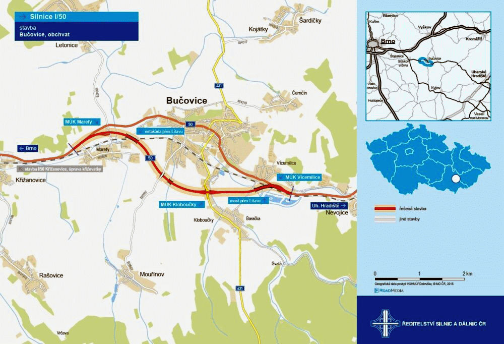 Silnice první třídy I/50 na ose Holubice – Uherské Hradiště – hranice České republiky a Slovenska je jedna z páteřních komunikací dopravního systému České republiky. V úseku Holubice – Uherské Hradiště se jedná o jeden z nejzatíženějších silničních tahů Moravy. Proto je nutné ulevit obcím na trase stávající silnice I/50 od hustého provozu. K tomu přispěje i plánovaný obchvat Bučovic. V rámci přípravy stavby obchvatu Bučovic na I/50 probíhá geotechnický průzkum, včetně sledování hladiny podzemních vod. „Závěrečnou zprávu očekáváme v červnu. Probíhá inženýrská činnost k zajištění podkladů pro podání žádosti o územní rozhodnutí. V přípravě je zpracování zadávací dokumentace pro možnost výběru zpracovatele dokumentace pro stavební povolení DSP. Předpoklad zahájení stavby je v roce 2025 a dokončení v roce 2027,“ uvedla mluvčí Ředitelství silnic a dálnic Lucie Trubelíková. Více o stavbě najdete zde.