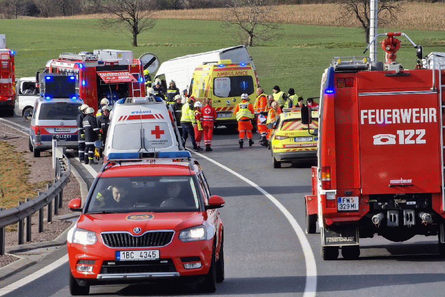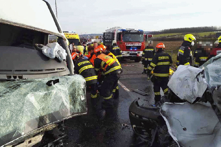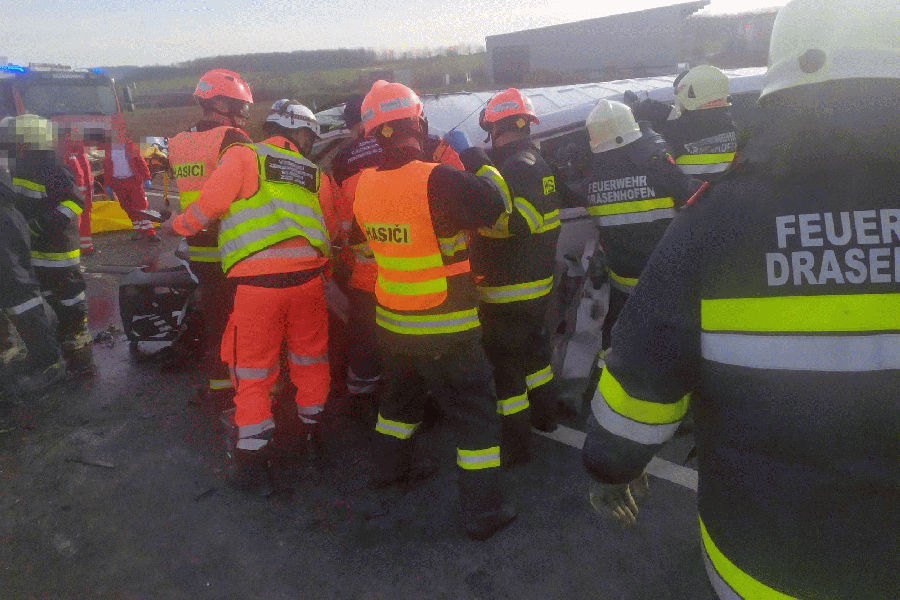 V sobotu se stala nehoda dvou vozidel na silnici I/55 na území Rakouska těsně u hranic. Čelně se tam srazily větší dodávka s minivanem Hasiči při příjezdu na místo události pomáhali spolu s rakouskými kolegy s vyprošťováním celkem pěti osob z havarovaných vozidel. K řešení situace z důvodu zásahu na území jiného státu byl vyslán také územní řídící důstojník, který zabezpečil koordinaci mezi zasahujícími. Celkem se zranilo 10 osob, které byly v péči záchranářů, a poté odvezeny do nemocnice ve Vídni, Dolním Rakousku a České republice. Celkem byly nasazeny čtyři zásahové vrtulníky z Rakouska i České republiky. Odstraňování následků nehody řešili hasiči z Rakouska. Silnice byla během zásahu uzavřena. „Děkujeme všem nasazeným jednotkám za perfektní spolupráci,“ uvedl mluvčí hasičů Štěpán Komosný.