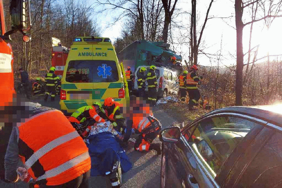 Na Vyškovsku se srazilo osobní auto s náklaďákem už v pátek v podvečer u Březiny. Vážná nehoda na několik hodin zablokovala silnici. Jak uvedl mluvčí hasičů Štěpán Komosný, po střetu zůstal v kabině zaklíněný řidič nákladního auta. „Vyprošťovali jsme ho ven. Následně ho záchranná služba vrtulníkem přepravila do nemocnice,“ doplnil Komosný. Druhý z řidičů podle všeho vyvázl bez výraznější újmy. Odborná firma pak vytahovala náklaďák zpátky na silnici.