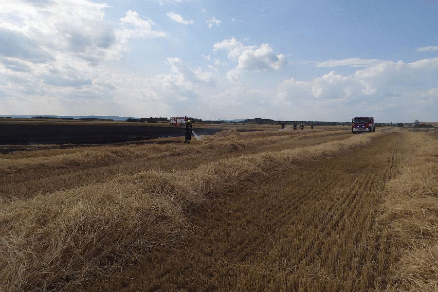 Při požáru vzrostlého obilí na poli u obce Přibice na Pohořelicku se oheň rychle rozšířil na plochu 200 krát 150 metrů. Do boje proti plamenům hasiči postupně nasadili pět vodních proudů. Drobná ohniska dohašovali ženijním náčiním. „Škodu vyšetřovatel vyčíslil předběžně na 30 tisíc korun. Hasiči svým rychlým zásahem uchránili hodnoty ve výši jednoho milionu korun,“ uvedl mluvčí hasičů. Příčina vzniku požáru je v šetření.