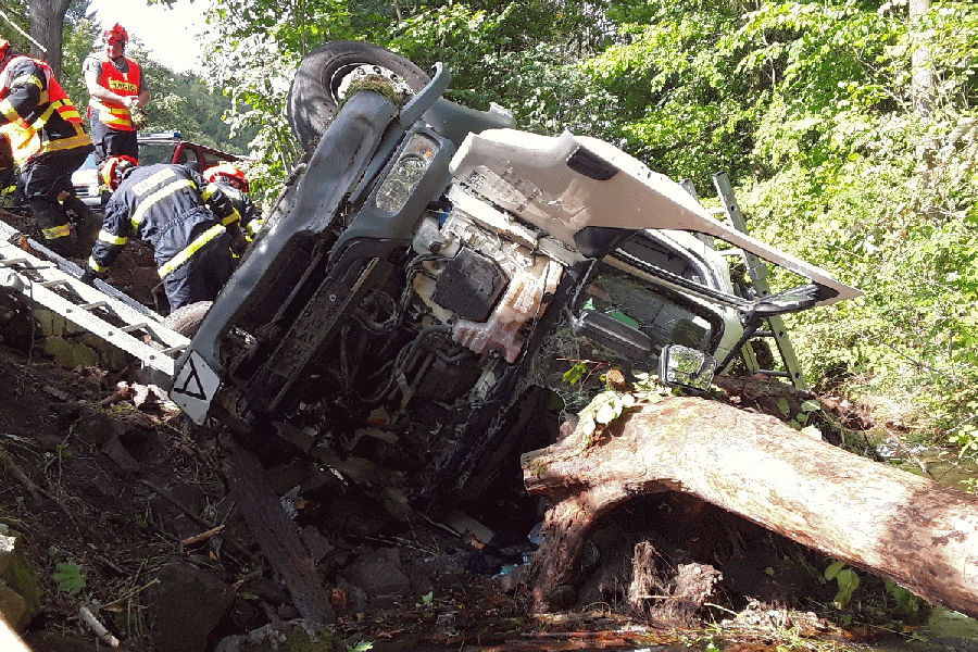 V pondělí v poledne vyslalo operační středisko hasičů profesionální a dobrovolné jednotky k dopravní nehodě nákladního automobilu. Auto s kontejnerem, které převáželo dřevěný odpad, se převrátilo do potoka u obce Úsobrno. „V kabině zůstal zaklíněný řidič, kterého jsme po lékařském zajištění začali vyprošťovat pomocí hydraulického vyprošťovacího zařízení. Pomocí páteřní desky jsme řidiče vyprostili a předali jej do péče záchranářů,“ popsal zásah mluvčí hasičů Štěpán Komosný.
