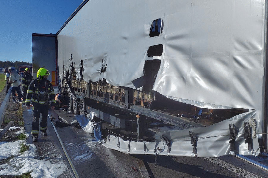 Na 178. kilometru dálnice D1 ve směru na Brno hořel návěs kamionu, který vezl pivo. Do boje proti plamenům hasiči nasadili postupně dva vodní proudy a jeden vysokotlaký proud. Oheň dostali pod kontrolu asi za 20 minut.. Požár zcela zlikvidovali v 17.17 hodin. „Vyšetřovatel vyčíslil škodu na 950 tisíc korun. Příčinou požáru byla technická závada na brzdovém systému návěsu,“ vysvětlil mluvčí hasičů Petr Příkaský. Při požáru se nikdo nezranil.