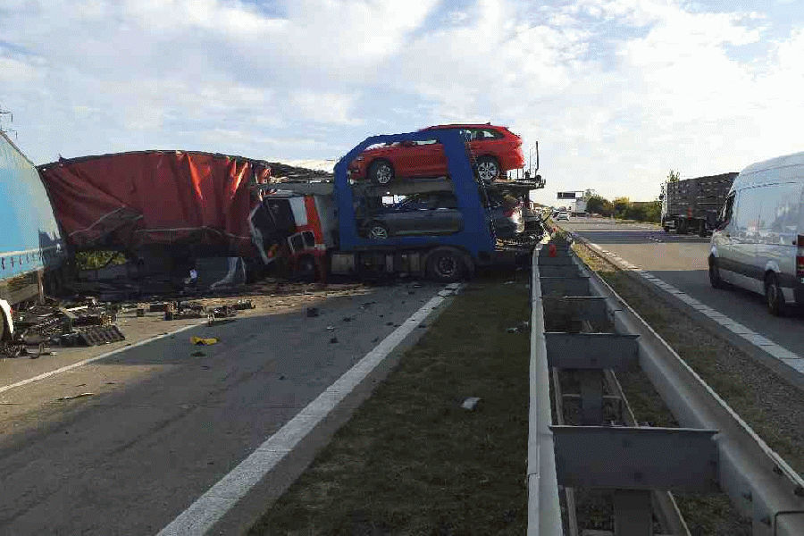 V úterý kolem půl páté odpoledne se stala hromadná nehoda čtyř kamionů na 16. kilometru ve směru na Brno. „D2 ve směru na Brno stojí po nehodě kamionů. Zasahujeme na místě,“ uvedli hasiči na sociální síti X. Tam také zveřejnili fotografie, na kterých jsou kamiony velmi poškozené. Jeden z kamionů převážel automobily. Z dalšího se vysypal náklad, jehož úklid zabere mnoho času. Jak uvedl policejní mluvčí David Chaloupka, byl zraněn jeden člověk. Policisté odkláněli dopravu na exitu 25. Na dálnici kvůli nehodě přistál vrtulník, který byl ale odvolán.