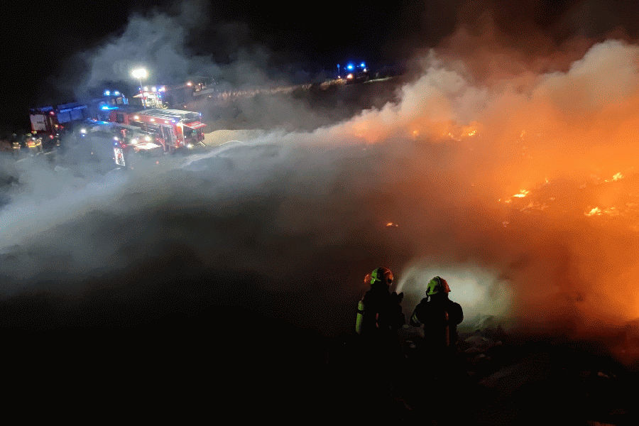K požáru skládky poblíž Únanova na Znojemsku si velitel zásahu po příjezdu vyžádal další posilové jednotky a operační středisko vyhlásilo druhý stupeň poplachu. „Požár skládky jsme hasili několika vodními proudy. Přibližně po hodině a půl se podařilo dostat požár pod kontrolu,“ popsal mluvčí hasičů Jaroslav Mikoška. Požár hasiči lokalizovali ve 4:20 hodin, zlikvidovali ho v 12:56 hodin. V tu dobu byla skládka bez plamenného hoření a bez kouře a počet jednotek hasiči zredukovali.