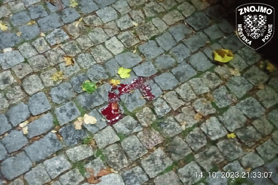 Na ulici Jana Palacha ve Znojmě spatřil strážník, který byl právě na hlídce, nehybně ležícího muže s krvavou ránou na hlavě. Odér nasvědčoval tomu, že je muž opilý, což byla zřejmě příčina jeho pádu na chodník. „Strážníci muži provedli orientační dechovou zkoušku, která ukázala 2,24 promile alkoholu v krvi. Strážníci proto přivolali na ulici Jana Palacha zdravotnickou záchrannou službu, aby muže ošetřila,“ uvedla preventistka Městské policie Znojmo Eva Veselá.