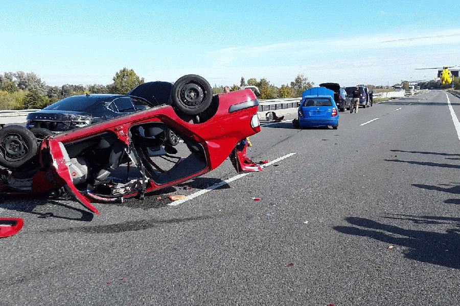 Hromadná nehoda pěti osobních aut na 226,5. kilometru dálnice D1 u Rousínova uzavřela provoz ve směru na Přerov. Na místě zasahovaly všechny složky záchranného systému. Policisté odkláněli dopravu přes exit 226 Rousínov. Kolona vozidel dosahovala až po 221. kilometr. Havarovalo pět aut, jedno se převrátilo na střechu. Přistál i vrtulník letecké záchranné služby. Jednoho zraněného hasiči vyprostili z havarovaného vozidla a předali do péče záchranářů. Před jednou hodinou odpoledne byla vozidla odstraněna do jednoho jízdního pruhu a provoz v místě nehody byl puštěný odstavným pruhem. Kolona se rozjížděla velmi pomalu.