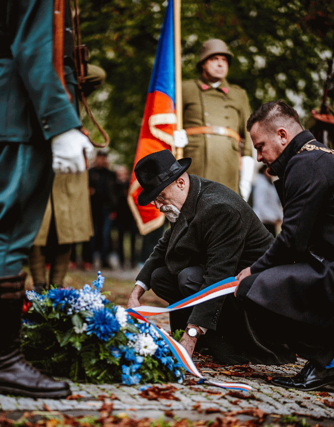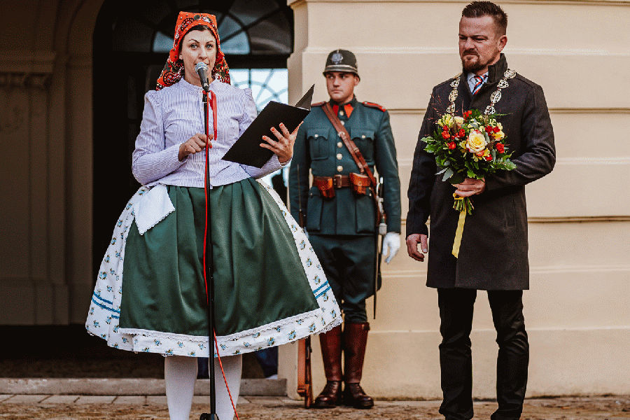 V sobotu 28. října přijela na Zámek Slavkov-Austerlitz ve Slavkově u Brna kolona historických vozidel s delegací vedenou představiteli československého prezidenta Masaryka a jeho dcery Alice. Starosta Slavkova u Brna Michal Boudný přivítal delegaci krátkým proslovem, ve kterém vzpomenul na návštěvy skutečného prezidenta ve Slavkově. Chlebem a solí přivítala delegaci také radní Slavkova Veronika Slámová v kroji. Automobily zapůjčilo Technické muzeum Brno. Prezident Masaryk přednesl část dobového projevu z roku 1924. „V dnešní státní svátek jsme na Zámek Slavkov – Austerlitz přivítali zakladatele Československého státu Tomáše Garrygue Masaryka s dcerou Alicí, podobně, jako v roce 1924, kdy TGM podnikl jízdu slavkovským bojištěm. Děkujeme Spolek Čechora za důstojnou oslavu vzniku našeho státu,“ uvedlo město na své stránce. Prezident Masaryk přednesl část dobového projevu z roku 1924.