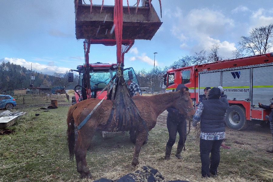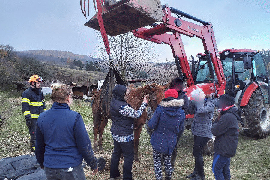 Na ranči Kopaniny v obci Kulířov na Blanensku bylo nutné zachránit kobylu, která nebyla schopná se sama zvednout na nohy z bahna. K této speciální operaci museli přijet hasiči ze stanice Vyškov a Brno-Přehrada, kteří jsou na záchranu zvířat specializovaní. Po dvou hodinách se jim podařilo kobylu zvednout na nohy pomocí sítě a přivolaného traktoru. Na místě byla kobyla ošetřena veterinářkou. „Mockrát děkujeme za pomoc. Chlapi byli úžasní, nezalekli se ani bláta co bylo po kolena. Podporovali nás a nenechali to vzdát, bez nich bychom to nezvládli. Byly to opravdu dvě dlouhé hodiny, ale zvládlo se to a kobylka je zase čiperka. Děkuji za celý ranč,“ poděkovala za ranč Kopaniny Jitka Vystrčilová.