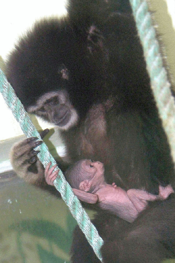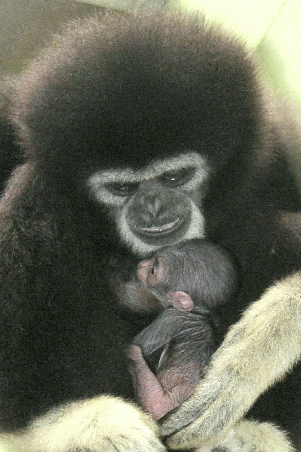 Zatím téměř lysé mládě, které se narodilo 4. února, nosí matka na břichu, kojí je a pečlivě si jej hlídá. Chrání je před každým nebezpečím a zároveň je bude učit zhruba do dvou let věku. Sestry si sourozence začnou brzy půjčovat a učit se tak mateřské roli. Pohlaví mláděte bude možné určit, až se více osamostatní a bude také možné jej očipovat. Gibony lar chová hodonínská zahrada dlouhodobě. Současný pár s jedním světlejším mládětem získala v roce 2020 z Francie, druhé mládě se narodilo v Hodoníně brzy po ničivém tornádu v roce 2021. Tito primáti žijí monogamně v malých rodinných skupinách. Typičtí jsou dlouhýma rukama a svým houkáním podobným zpěvu. Tím spolu komunikují, vymezují si teritorium a odrazují případné vetřelce.
