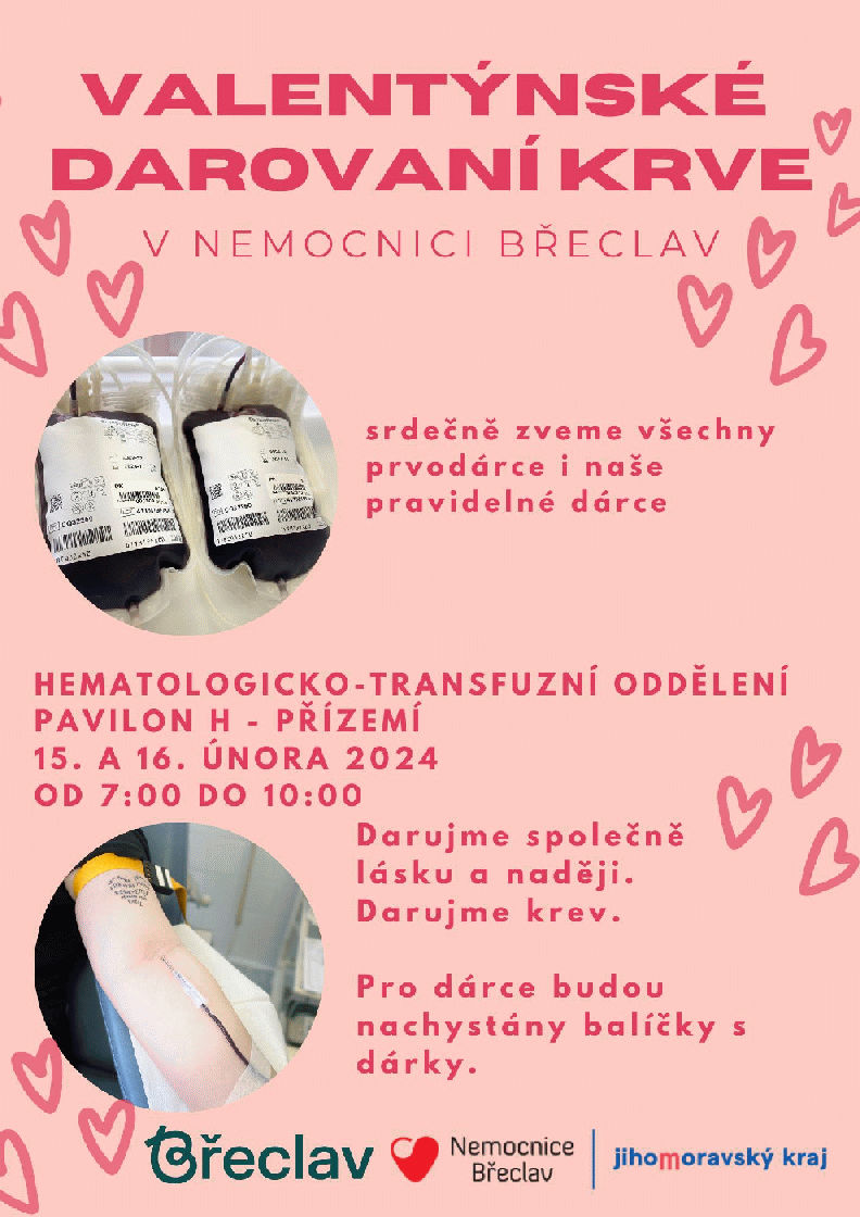 Darovat krev je podle zástupců nemocnice dárek, který má smysl a nezůstane nevyužitý. Pro každý pár byl připravený romantický dárek. Kdo nestihnul přijít právě tuto středu, může dorazit kteroukoli jinou středu. Dárce krve přivítají také vždy v úterý, a to mezi sedmou a devátou ráno. Darovat lze i plazmu, a to v pondělí, čtvrtek a pátek. Bližší informace jsou k nalezení ZDE. Odběr byl určen pro pravidelné dárce i prvodárce. Jedinou podmínkou bylo darování obou partnerů. „Krev je nenahraditelná tekutina, která zachraňuje život. Z plazmy se vyrábí krevní deriváty, které se používají při léčbě celé řady nemocí a krvácivých stavů,“ vysvětlila nemocnice na svých webových stránkách. Podobné akce pořádaly na Valentýna i další nemocnice v Jihomoravském kraji, například Fakultní nemocnice v Brně nebo nemocnice v Břeclavi.