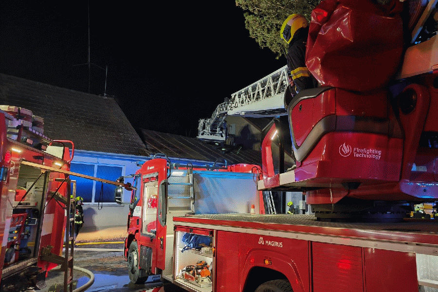 V neděli večer vznikl požár v objektu bývalé administrativní budovy a skladu v ulici Perunská v Hodoníně. Jak popsal mluvčí hasičů Petr Příkaský, do boje proti plamenům hasiči nasadili tři vodní proudy. Oheň se rozšířil ze skladu na střechu objektu. Z budovy hasiči vytáhli vozík, čtyřkolku a motocykl. Rozbrušovací pilou vytvořili ve střeše otvor, kterým půdní prostor odvětrali. Oheň dostali pod kontrolu v 22.46 hodin. Celý objekt odvětrali přetlakovou ventilací. Na průzkum hasiči použili i dron. Z budovy vynášeli ohněm zasažený materiál a ten následně dohašovali. Požár byl zcela uhašen v 23.50 hodin. „Vyšetřovatel vyčíslil předběžně škodu na 350 tisíc korun. Hasiči svým zásahem uchránili majetek ve výši 3 milionů korun. Příčina vzniku požáru je v šetření. Při požáru se nikdo nezranil,“ dodal Příkaský.