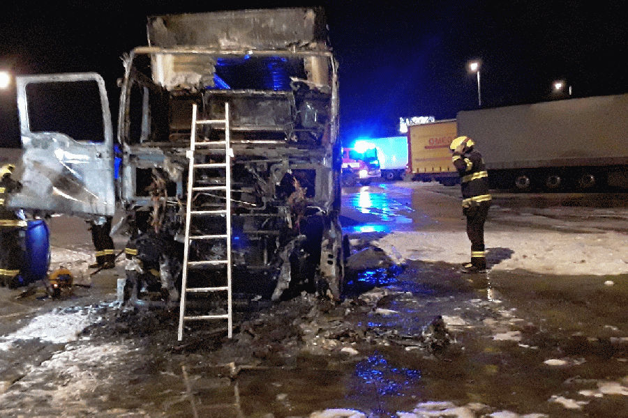 V úterý v noci začal na odpočívadle na 10,5. kilometru dálnice D52 u Rajhradu blízko ulice Stará pošta ve směru na Brno hořet kamion. Informaci o požáru hasiči přijali ve 21.43 hodin. Operační středisko vyslalo ihned k nahlášenému požáru osm zásahových vozidel. Jak popsal mluvčí hasičů Jaroslav Mikoška, první posádka byla na místě za 10 minut. V té době byla celá kabina v plamenech a požár se již šířil po návěsu kamionu. Hasiči plameny likvidovali pomocí dvou vodních proudů se smáčedlem. V kabině následně našli tělo jedné oběti. Po likvidaci požáru v 22:49 hodin tělo vyprostili a současně přečerpali z nádrží kamionu 600 litrů nafty. „Zásah našich jednotek na místě skončil krátce před půl jednou. Škoda a příčina vzniku požáru jsou nadále v šetření,“ doplnil Mikoška.