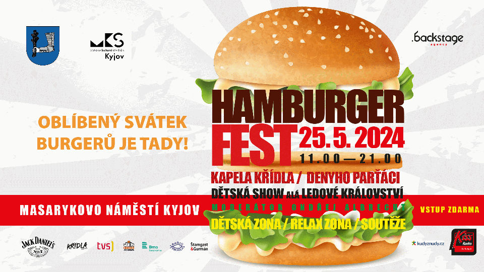 Do Kyjova opět přijede BEERJET, čili návštěvníci se mohou těšit na výdej vychlazeného pivečka bez velkých front. „Pro letošní rok jsme se snažili gastro nabídku rozšířit, proto věříme, že akce bude pro lidi komfortnější a sortiment ještě pestřejší,“ sdělil Lukáš Lauman z agentury Backstage. Nebudou chybět svěží alko i nealko koktejly, víno, domácí limonády nebo lahodná voňavá káva z nádherného Fiatu 500 předělaného na kavárničku. Kromě vybraných pochoutek je připravený i bohatý doprovodný program, kterým provede zkušený moderátor Ondřej Albrecht. Na podiu se představí skvělá kapela Křídla a až z Českých Budějovic dorazí oblíbení Denyho Parťáci. Děti si užijí zábavu při show s postavičkami z Ledového Království, skákací hrady, herničky, tetovačky, balónky, soutěže a další pestrou zábavu. Akce začne v 11 hodin a potrvá až do 21 hodin. Vstup je pro všechny zdarma. Aktuální informace budou na HamBurger Fest KYJOV | Facebook.