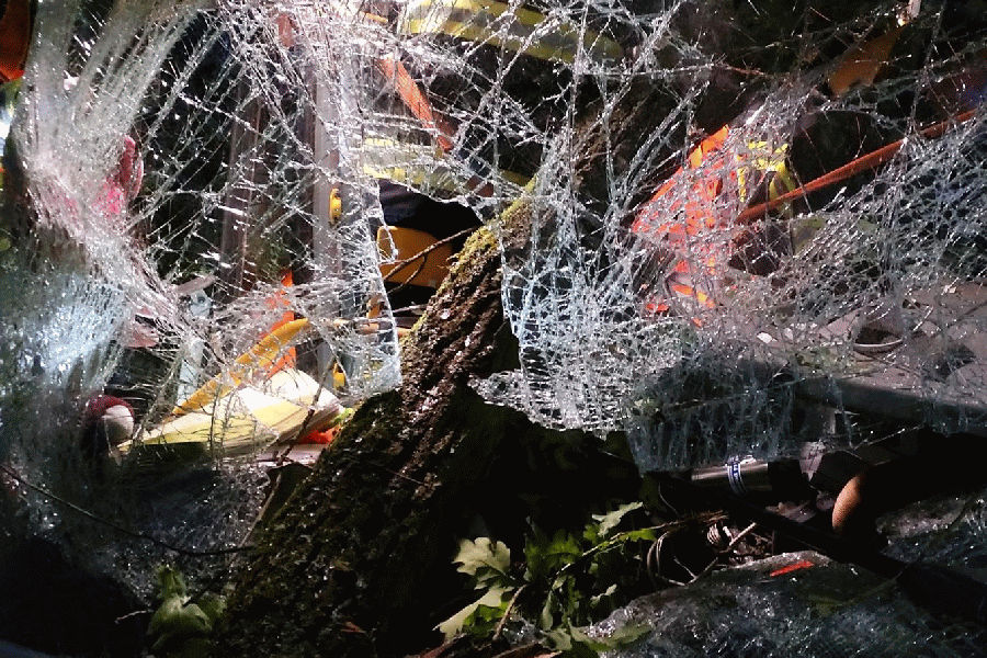 Nehoda linkového autobusu se stala po deváté hodině večer, autobus narazil do stromu spadeného na silnici. Hasiči museli z autobusu dostat zaklíněný strom a následně vyprostit zraněnou řidičku. „Nejdřív bylo nutné pomocí motorové pily odstranit dřevní hmotu a větve, které pronikly do autobusu. Řidička byla z kabiny transportována po 40 minutách,“ uvedl mluvčí hasičů Jaroslav Mikoška. „Ženu se středně těžkými poraněními jsme převzali do péče. Naši zdravotníci jí poskytli kyslíkovou terapii, zaléčili ji a zafixovali, načež ji převezli na urgentní příjem do Fakultní nemocnice Brno,“ upřesnila mluvčí záchranářů Michaela Bothová. Kromě řidičky cestovalo v autobuse dalších 15 cestujících. Podle policie někteří z nich utrpěli lehká zranění. Celková škoda byla odhadnuta na 100 tisíc korun.
