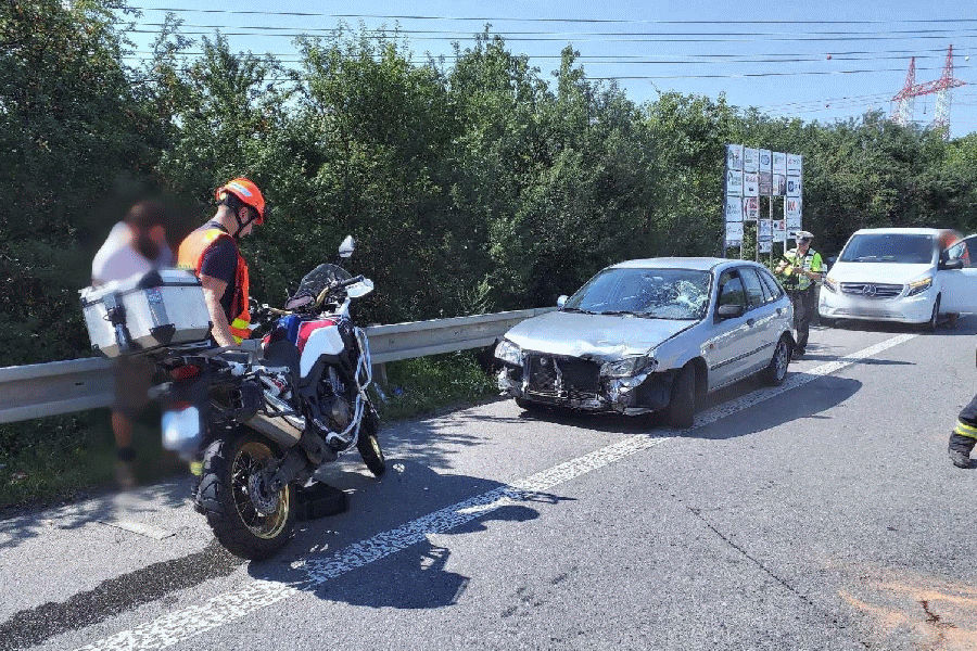 K havárii auta a motorky došlo v úterý dopoledne na Brněnské ulici v Modřicích. Motocykl skončil po srážce na automobilu. Záchranáři se postarali o zraněného motorkáře. „Motocyklistu jsme po ošetření vezli k vyloučení vážnějších zranění do Fakultní nemocnice Brno,“ sdělila mluvčí záchranářů Michaela Bothová.