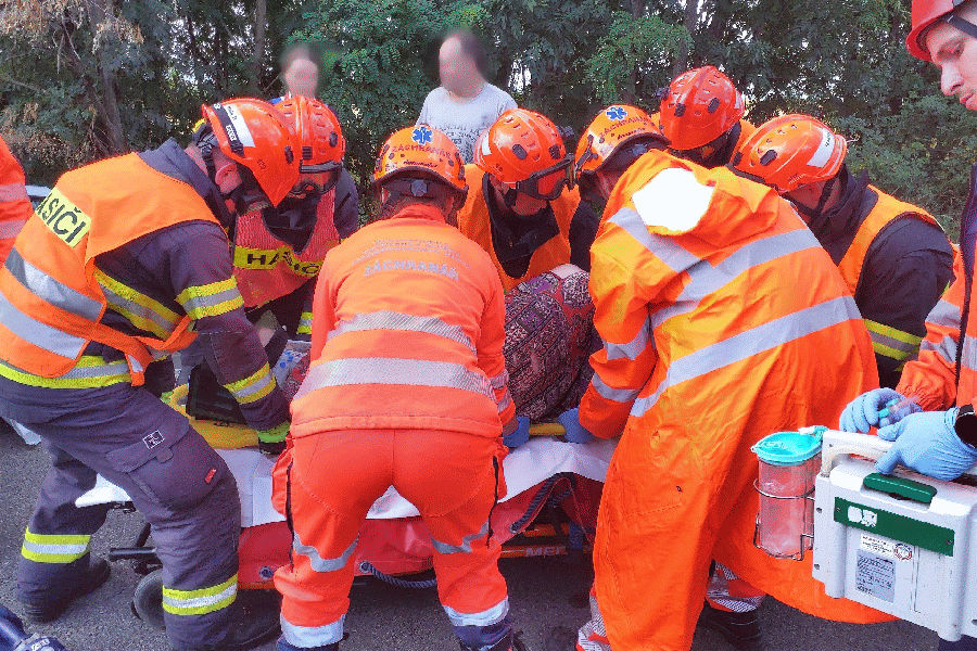 Srážka tří osobních aut a dodávky v úterý jedenáctou hodinou zablokovala hlavní tah z Brna na Slovensko poblíž Slavkova u Brna. Za použití dvou vyprošťovacích sad vyprostili hasiči z Dacie dvě dospělé osoby a z vozidla značky Audi řidičku a tři malé děti. Záchranáři na místě ošetřili osm zraněných. „V péči jsme měli tři děti, které jsme po kontrole stavu převezli na pozorování do Dětské nemocnice v Brně. Dále jsme ošetřili ženu, která byla s podezřením na těžké zranění letecky transportována do Fakultní nemocnice Brno. Zbývající čtyři dospělé osoby utrpěly zranění v rozmezí lehkých až středně těžkých. Po poskytnutí péče jsme je převezli do brněnské Vojenské a Úrazové nemocnice,“ uvedla mluvčí záchranářů Michaela Bothová. Komunikace I/50 byla uzavřená. Objízdná trasa vedla přes okolní obce a byla přetížená.