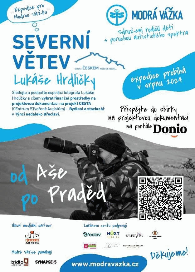 Lukáš Hrdlička přešel vloni stezku SNP v délce 800 kilometrů napříč slovenskými pohořími a podařilo se mu vybrat 120 tisíc korun pro potřebné. Letošní trasa má 770 kilometrů, celkové převýšení 18 tisíc metrů a Lukáš ji chce zvládnout za 23 dní. Po dobu cesty bude aktivní charitativní sbírka na serveru DONIO, kam můžete přispět už nyní. I letos půjdou vybrané peníze organizaci Modrá vážka, která se zabývá péčí o děti s autismem. Darovaná částka bude Modrou vážkou využita na projektovou dokumentaci stacionáře, který bude poskytovat 24-hodinovou péči včetně ubytování pro autistické děti z Břeclavska. O průběhu cesty bude Lukáš pravidelně informovat na facebookových stránkách Lukášův charitativní pochod pro dobrou věc podpořilo také město Břeclav. Dozvědět se více o projektu a přispět na dobrou věc můžete zde.