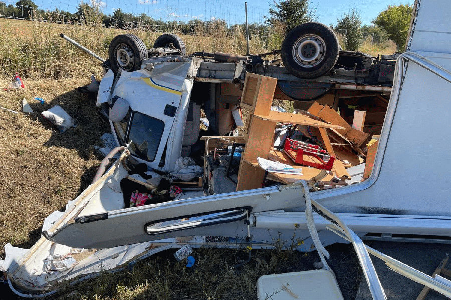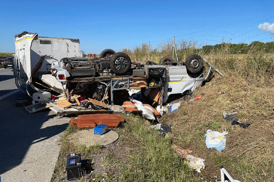 Na 213. kilometru dálnice D1 ve směru na Brno se v úterý ráno převrátil karavan na střechu po srážce s nákladním vozem. Oba dva lidé v karavanu se zranili, jedna žena těžce, vyprošťovali ji hasiči, protože byla zaklíněná pod karavanem. Dálnice zůstala během dopoledne průjezdná jedním pruhem. „Podle prvotních informací při přejíždění z pruhu do pruhu došlo mezi nákladním autem a karavanem ke střetu,“ popsal policejní mluvčí Pavel Šváb. Dechové zkoušky byly u obou řidičů negativní. „Záchranáři ošetřili těžce zraněnou ženu středního věku. Poskytli jí kyslíkovou terapii a zafixovali ji. Po ošetření putovala na urgentní příjem Fakultní nemocnice Brno. Druhým pacientem byl muž středního věku, do nemocnice jsme jej po ošetření převezli k vyloučení vážnějších zranění,“ informovala mluvčí záchranné služby Michaela Bothová. V karavanu jel s lidmi také malý jorkšírský teriér. Od dopravních policistů si ho převzali vyškovští strážníci. Posádka kamionu vyvázla bez zranění. Před místem nehody se vytvořila několik kilometrů dlouhá kolona. Levý jízdní pruh byl průjezdný, kolona se díky tomu hýbala. Likvidace následků nehody probíhala asi do poledne.