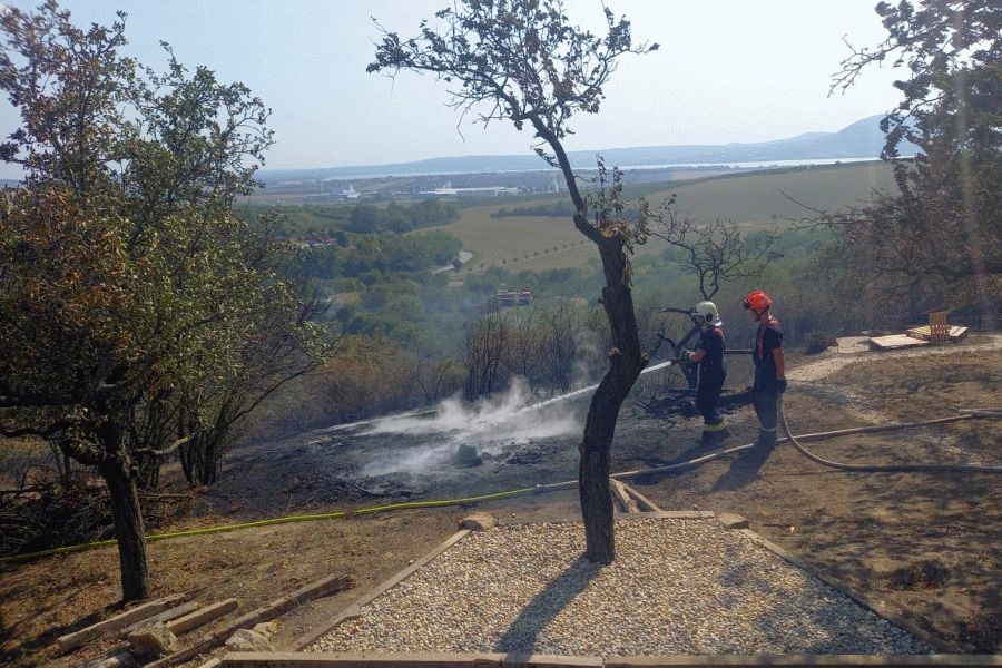 V pondělí kolem půl druhé odpoledne vyjížděli hasiči do Hustopečí k požáru trávy, náletových křovin a stromů. Plameny se rychle šířily v nepřístupném terénu a zachvátily plochu 250 x 100 metrů. Operační středisko hasičů vyhlásilo druhý stupeň požárního poplachu. Na místo se postupně sjelo jedenáct jednotek. Podle mluvčího hasičů Petra Příkaského dostali hasiči oheň pod kontrolu několika vodními proudy v 14.27 hodin. Požár zcela zlikvidovali v 16.54 hodin. Na místě operoval také dron, který hasiči využili k průzkumu termokamerou. „Škoda na majetku je nulová. Hasiči svých zásahem uchránili majetek za 50 tisíc korun. Příčinou vzniku požáru bylo pálení rostlinného odpadu,“ dodal Příkaský. Při požáru se zranil jeden člověk.