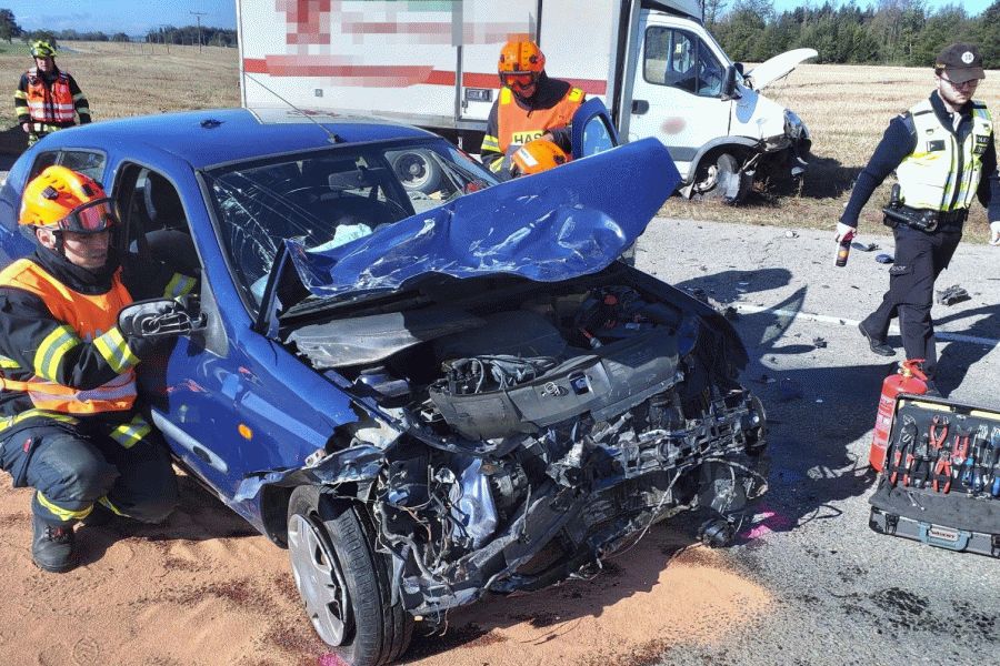 Ve středu po desáté hodině dopoledne spěchali hasiči k nehodě dodávky a auta na Blanensku. Nehoda se stala na silnici 378 mezi obcemi Senetářov a Krásensko nedaleko obce Jedovnice. Hasiči ošetřili dva zraněné lidi v osobním autě, zajistili místo proti požáru a usměrňovali provoz. Řidič dodávky žádná zranění neutrpěl. „V autě se zranili muž a žena oba seniorského věku. „Muže jsme ponechali na místě, ženu s lehkým zraněním jsme převezli do vyškovské nemocnice,“ doplnila mluvčí záchranářů Michaela Bothová. Provoz byl možný pouze kyvadlově jedním jízdním pruhem, než hasiči uklidili vozovku a pomohli naložit auto na odtah. Dodávku pak vysunuli z příkopu.