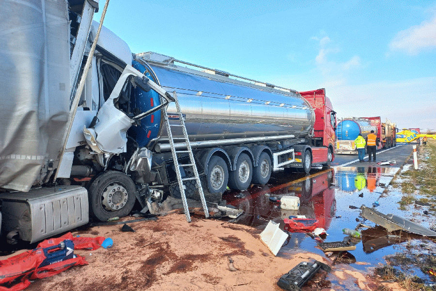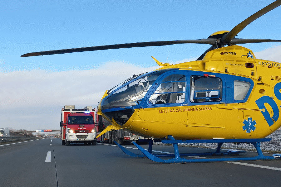 V úterý před polednem přijalo hasičské operační středisko informaci o nehodě dvou kamionů na dálnici D2 před sjezdem na Modřice. K události vyjely čtyři jednotky profesionálních hasičů. První jednotka potvrdila informaci o zaklínění jednoho z řidičů. Hasiči zahájili vyprošťovací práce pomocí hydraulického zařízení. Provoz na Brno byl zastaven a směr na Bratislavu byl vzhledem k zasahující technice omezený. V poledne se podařilo zraněného muže vyprostit. Záchranná služba jej převzala do plné péče. Hasiči pomohli s transportem pacienta na palubu vrtulníku, který přistál poblíž nehody. Provoz ve směru na Bratislavu byl plně obnoven. Hasiči zasypali uniklé provozní kapaliny sorbentem, zajistili místo proti požáru a odtrhli od sebe obě havarovaná vozidla. „Ve 13.20 hodin předal velitel zásahu místo události k došetření policii a jednotky se vrátily na základny,“ uzavřel mluvčí hasičů Jaroslav Mikoška.