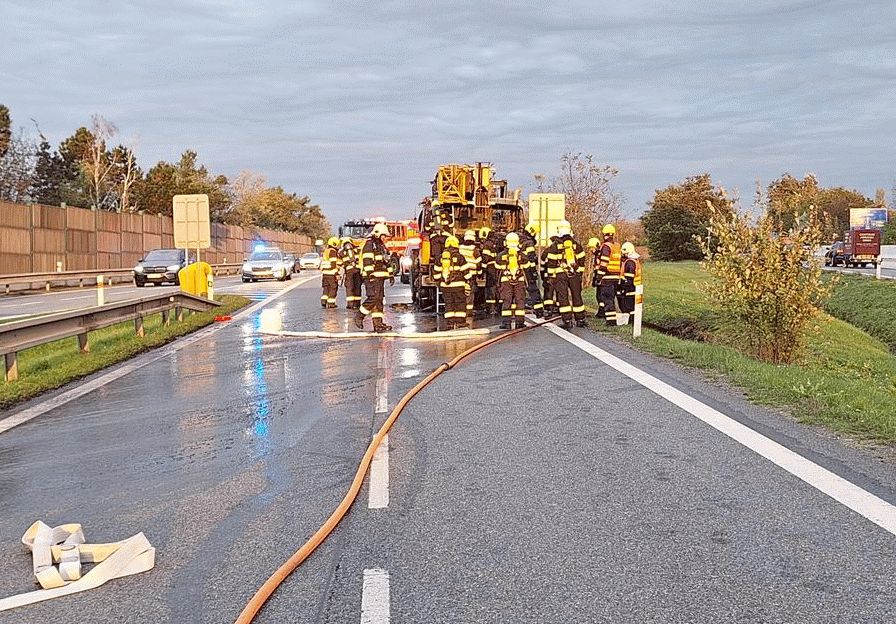 Ranní požár autojeřábu na silnici I/50 za sjezdem z dálnice D1 u Holubic směrem na Slavkov u Brna omezil dopravu. Jeřáb byl za chvíli plně zasažen požárem. „Plameny vozidlo zcela zničily. Příčinou byla technická závada, která se projevila za jízdy. Událost se obešla bez zranění. Škoda způsobená požárem se odhaduje na 1,5 milionu korun,“ uvedl mluvčí hasičů Jaroslav Mikoška. Během hašení požáru komplikovaly práci hasičům vybuchující hořící pneumatiky, což bylo pro hasiče velmi nebezpečné.
