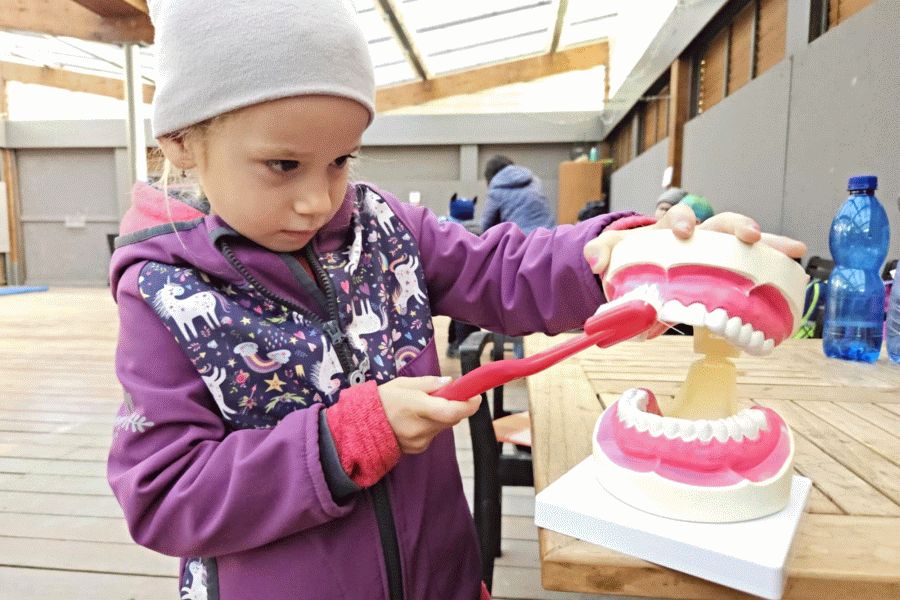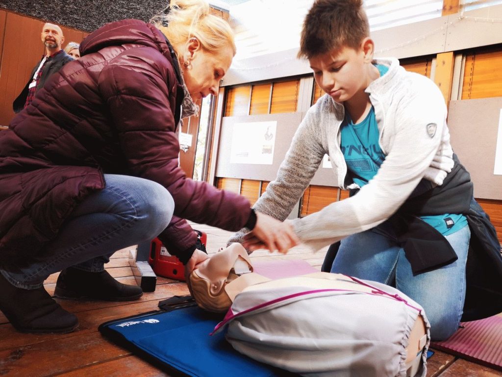 Děti během dopoledne stráveného v pavilonu městského parku viděly třeba transport plyšáka k sanitce. Díky básničce a omalovánce číslic se naučily tolik potřebné telefonní číslo 155. A pobavilo je i legrační vyšetření u doktora nebo čištění zoubků s modelem a básničkou. Pro starší děti, tentokrát už ze škol základních, si budoucí zdravotníci připravili o něco náročnější program. Mluvilo se při něm třeba o aplikaci Záchranka, školáci se naučili pomoci raněnému v bezvědomí, rozpoznávaly orgány na anatomickém modelu a vyzkoušeli si třeba jednoduché ošetření popáleniny nebo nácvik masáže srdce.