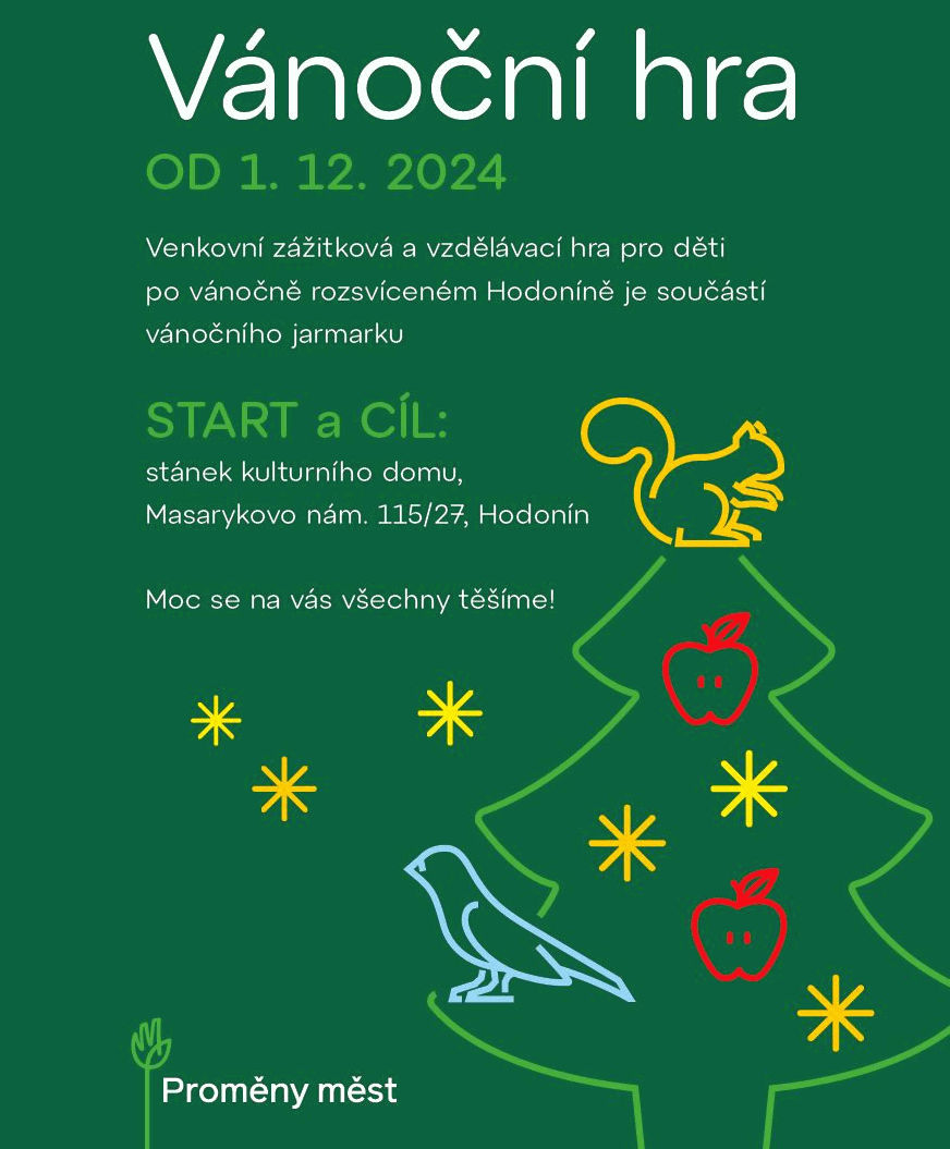 Vánoční hra v Hodoníně se i letos týká území Příměstského lesa Bažantnice, část i národní přírodní památky Hodonínská Dúbrava, která poskytla pro vánoční hru mnoho zajímavých témat ze života rostlin a zvířat. Hra je volně ke stažení na webu v sekci pro děti, takže si ji mohou připravit i zájmové skupiny a spolky. Je navržena tak, aby ji bylo možné realizovat v jakékoliv obci, městě nebo přírodním prostředí, třeba v lese. Stačí připravit 4 stanoviště a k nim připojené archy s otázkami. Více informací a herní materiály najdete na bazantnicezije.cz. Hra startuje 1.12.2024 v 10:00 na Masarykově náměstí 115/27 v Hodoníně, kde bude stánek kulturního domu až do vydání všech balíčků.
