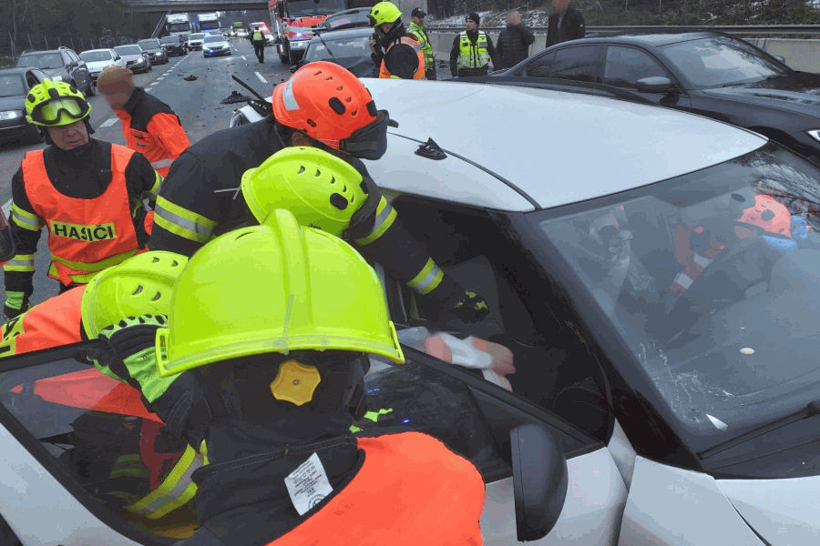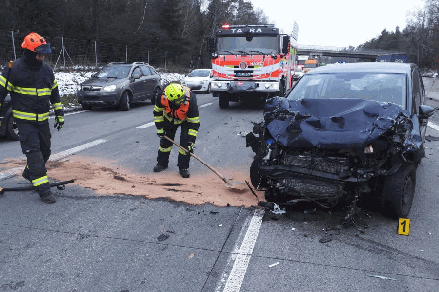 K první nehodě vyjížděly jednotky z Rosic a Velké Bíteše po jedenácté hodině. Na 168. kilometru ve směru na Brno se střetla celkem čtyři osobní vozidla. „Z jednoho z nich museli hasiči vyprostit zraněnou osobu a následně ji předali záchranářům. Z důvodu zásahu složek IZS a přistání vrtulníku záchranářů byl provoz na dálnici zhruba na hodinu omezen,” popsal mluvčí hasičů Filip Venclovský.