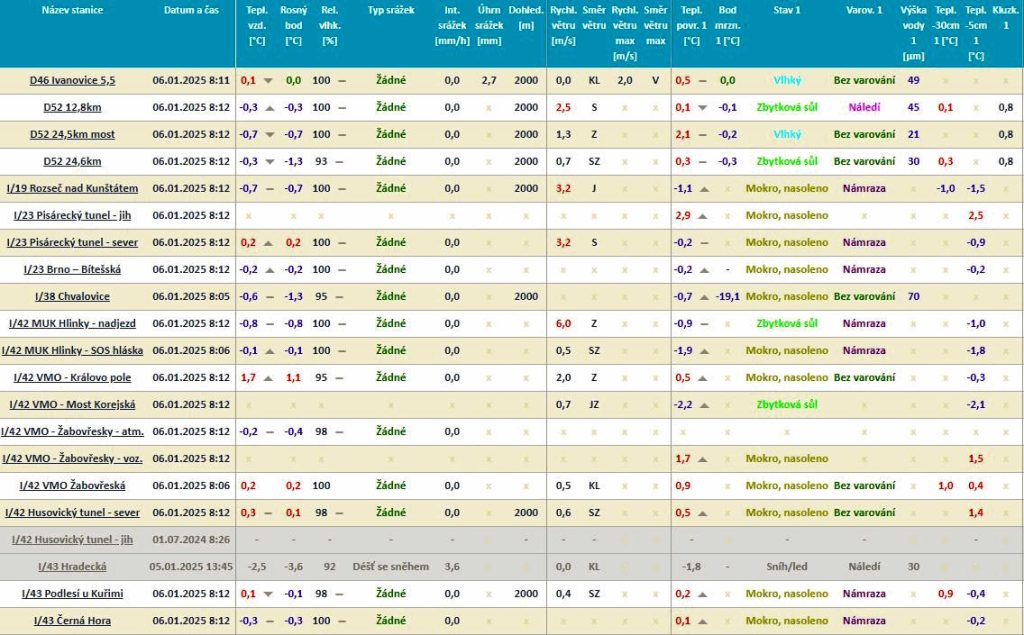 Ledovka na silnici zkomplikovala dopravu ve vyšších polohách na Blanensku a také v okolí Tišnova na Brněnsku. Některé úseky byly v pondělí 6. ledna ráno dočasně nesjízdné. Některé ranní spoje vůbec nevyjely, potíže byly hlavně kolem Letovic, Boskovic a Kunštátu. Kolem sedmé hodiny ranní autobusové linky neobsluhovaly zastávky v Lazinově na Blanensku, Drahoníně a Rojetíně na Brněnsku. Nedělní večerní výjezd všech 21 posypových vozů brněnských komunikací byl zahájen ve 20:30, pokračoval celou noc s přestávkami na doplnění posypového materiálu, byl ukončen v pondělí v 5:00. Během něj bylo ošetřeno 1807 km komunikací, spotřebováno 235 tun posypové soli a 30 tisíc litrů solanky.