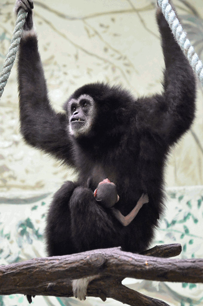 Zatím téměř lysé mládě gibona v hodonínské zoo si samice drží a chrání, jeho pohlaví tak bude možné určit až po několika měsících. Přesto jej návštěvníci mohou při troše štěstí spatřit, zatím hlavně ve vnitřní expozici pavilonu primátů. Zajímají se už o něj také dvě jeho starší sestry. Gibon lar, nazývaný též běloruký, patří mezi ohrožené druhy, především kvůli odlesňování. Jeho domovinou je jihovýchodní Asie. Živí se zejména ovocem, listy či hmyzem. Giboni se díky dlouhým pažím rychle a hbitě pohybují, v přírodě se zdržují v korunách stromů. „Typické je pro ně kromě obratnosti také dorozumívání a vymezování teritoria hlasitým houkáním podobným zpěvu, což můžete u nás občas slyšet,“ uvedli pracovníci zoo na své stránce.