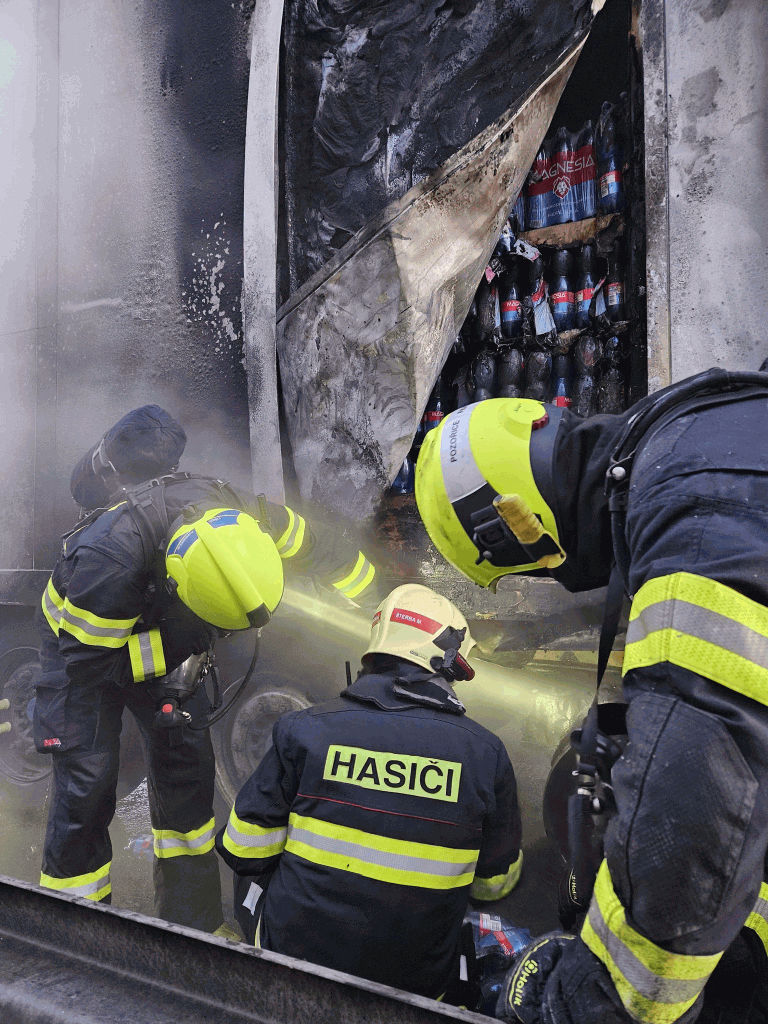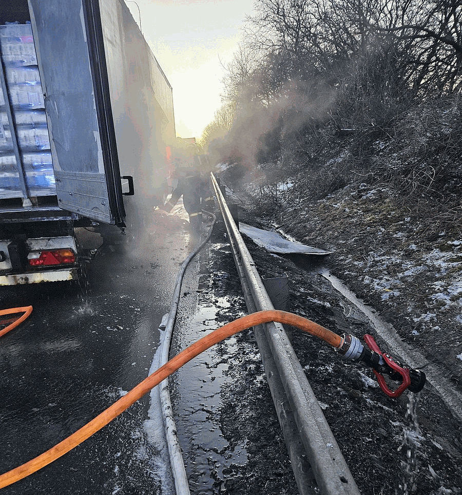 Na dálnici D1 na 210. kilometru ve směru na Vyškov vypukl ve středu v 6:20 hodin požár návěsu kamionu v pravém odstavném pruhu. Dálnice byla uzavřena kvůli zásahu hasičů. Po několika minutách hasiči zprovoznili jeden jízdní pruh. V návěsu byly PET lahve s vodou. „Příčinou požáru byla technická závada kola,” uvedli hasiči na síti X.